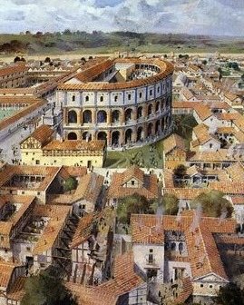 In the center of any Roman town was an open space called the Forum used as a marketplace. There was also the Basilica used for local government, tax collecting and record keeping. The Roman towns were military stations surrounded by walls for defense and guarded by the Roman warriors.